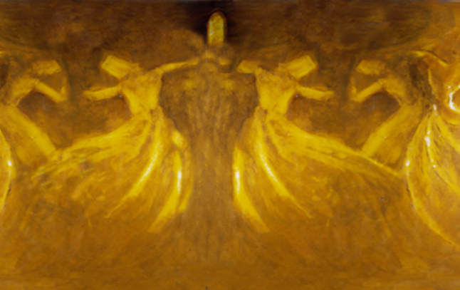 Das Auge folgt der poetischen Beziehung von Komposition und Kontur, von Fläche und Detail, entdeckt Ausblicke, die der Enge lineare Vorstellung weichen. Das Gefühl steht im Übergang, so wie die Tänzer verharren zwischen Stille und Bewegung, Raum und Ausschnitt. Es wird verkörperlicht; keine Plastizität,weder körperliches Volumina, noch individuelle Mimik, keine Schatten, nur Fläche und Pigment. Für die Form bleibt nur nicht die malerische Andeutung der Geste. Gegenstand und Figurlichkeit existieren nicht um ihr Selbstwillen."